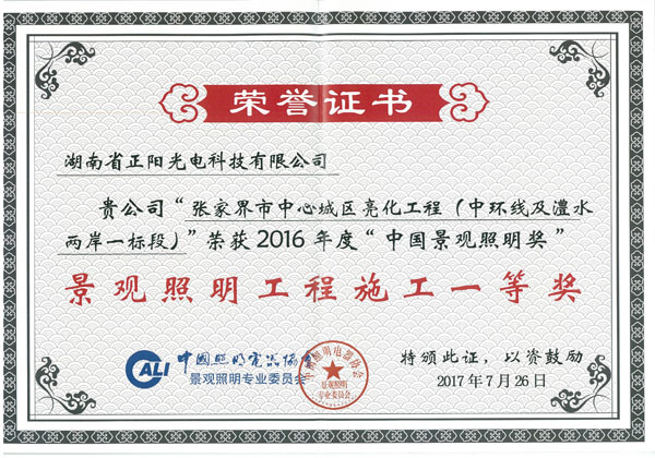 湖南省正陽光電科技有限公司是一家從事亮化工程及大型燈光藝術的設計、制作、安裝和維護于一體的專業化公司。公司資質齊全、管理嚴謹、技術先進、實力雄厚,取得了城市及道路照明工程專業承包壹級資質、照明工程設計專項甲級資質、國家高新技術企業、國家“重質量·守誠信”示范企業。